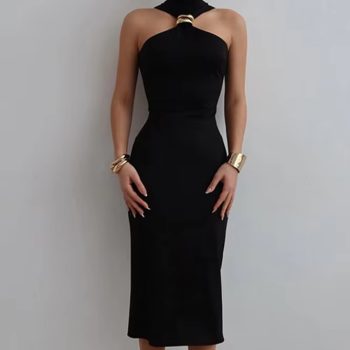 Victoria’s Vouge Black Bodycon Elegant Dress Women Fashion Turtleneck Off Shoulder Slim Midi Dresses Party Sexy Vacation Dress Femme 2025