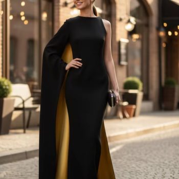 Victoria’s Vogue Women’s Asymmetric Cape Dress Ruffled One-sleeve Floor Length Evening Gowns 2025 Stylish Contrast Color Party Dresses