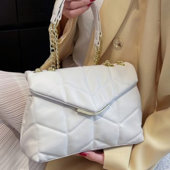 victoria’s vogue Big Chain Crossbody Bag Quilted Leather Shoulder Bag Simple Embroidery Thread Handbags Women Fashion Casual Messenger Bag