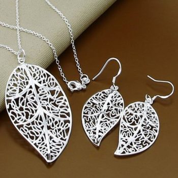 DOTEFFIL 925 Sterling Silver 18 Inch Chain Leaves Pendant Necklace Earring Set For Woman Wedding Engagement Party Jewelry