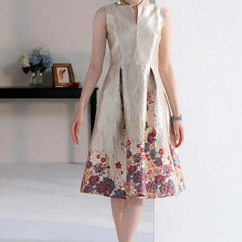 Victoria’s Vogue Luxury Women Fashion High Quality Jacquard A Line Ball Gown Sleeveless Summer Casual Clothing Midi Femme Party Dressses