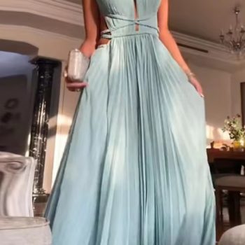 Victoria’s Vogue Women O-neck High Waist Pleated Long Dress Sexy Hollow Out Backless Swing Beach Dress Spring Summer Sleeveless Solid Party Dress