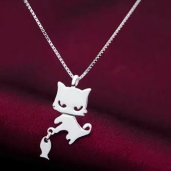Victoria’s Vogue New Simple Creative Cute Kitten And Fish 925 Sterling Silver Jewelry Fashion Animal Popular Cat Clavicle Chain Necklaces