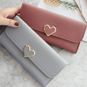 victoria’svogue Cute PU Leather Heart Shaped Decoration Long Purse Buckle Clutch Women’S Wallet
