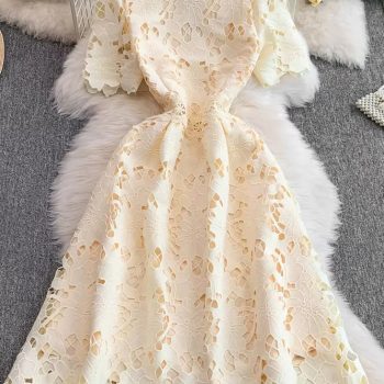 Victoria’s Vouge Summer Lace round Ne Dr Women’s High Waist Slimming Long Skirt Korean Sle Commute High Quali Sensation