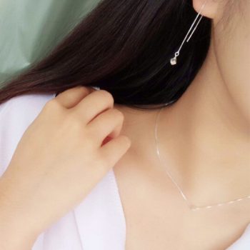 Victoria’s Vogue Three-dimensional Square Ear Line 925 Sterling Silver Jewelry Drop Earrings Fashion Simple Wild Anti-allergic Female Earrings