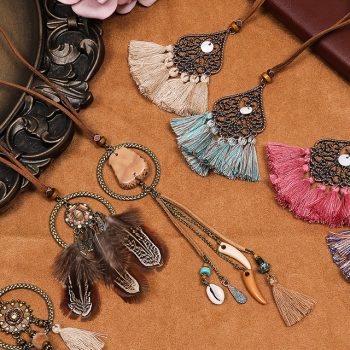 victoria’svogue Vintage Boho Ethinic Tassel Pendant Necklace for Women Female 2021 Fashion Winter Sweater Chain