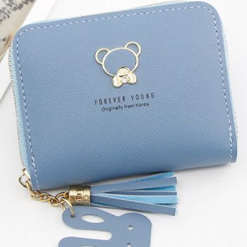 Victoria’s Vogue Cartoon Metal Bear PU Leather Short Card Holder Cute Purse Women Pocket Wallet