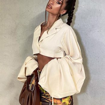 victoria’s vogue Women Solid Long Loose Flare Sleeve With Drawstring Single-Breasted Crop Top 2021 Autumn Y2K Streetwear Outfit Fashion