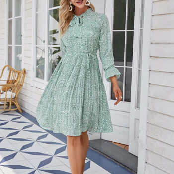 victoria’s vogue Elegant spring summer floral print midi dress women Ruffle sleeve bow sash pleated dress chic High waist dresses loose
