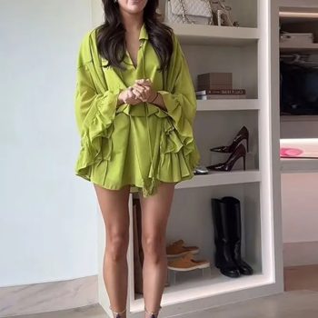 Victoria’s Vogue Fashion V Neck Ruffles Mini Dress For Women Casual Loose Solid Long Sleeves Vestidos Spring Summer High Streetwear Female