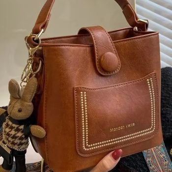 Victoria’s Vogue Vintage Simple Small PU Leather Bucket Crossbody Bag for Women 2024 Designer Fashion Lady Luxury Black Shoulder Handbag