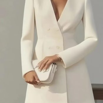 Victoria’s Vogue Fashionable V-neck Long-sleeved Double-breasted Waist Mini Dress