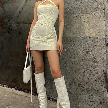 victoria’s vogue Sexy Party Club Bodycon Dresses For Women’s 2022 Summer Clothing Sleeveless Lace Up Mixi Dress Female Streetwears