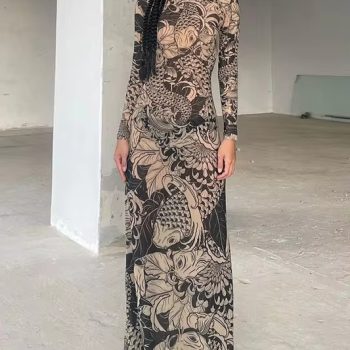 Victoria’s Vogue Women 2023 Autumn Winter Long Sleeve Mesh See Through Streetwear Bodycon Long Dress Wholesale Items For Business