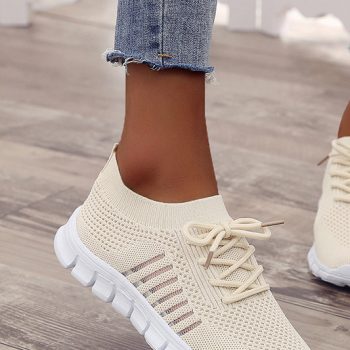 Victoria’s Vogue Women Sneaker Round Head Mesh Women Flat Shoes Breathable Trainer Walking Platform Buttom Casual Sneaker Lace Up Tenis Feminino