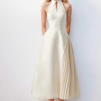 Victoria’s Vogue Solid Hollow Out Patchwork Folds Elegant Dress For Women Lapel Sleeveless High Waist Temperament Slimming Dresses Female New