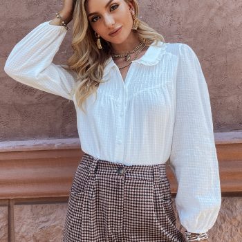 victoria’s vogue Doll Collar Buttons Causal Square White Shirt Women Autumn Winter Solid Long Lantern Sleeve tops Cotton Loose Blouse