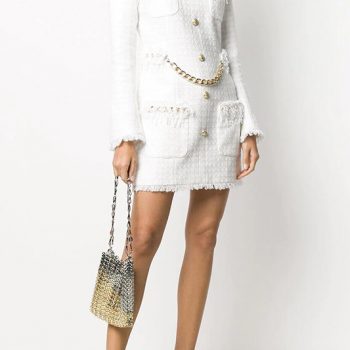 victoria’s vogue Newest 2022 Fall Winter Designer Fashion Lion Buttons Metal Chain Fringed Tassel Tweed Dress