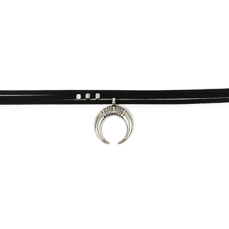 victoria’svogue Punk Moon Necklace for Women Vintage Spanish Bull Horn Crescent Chocker Fashion 3 Layers Black Velvet Choker Necklace