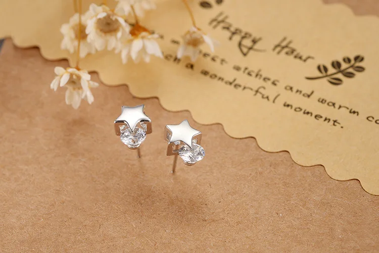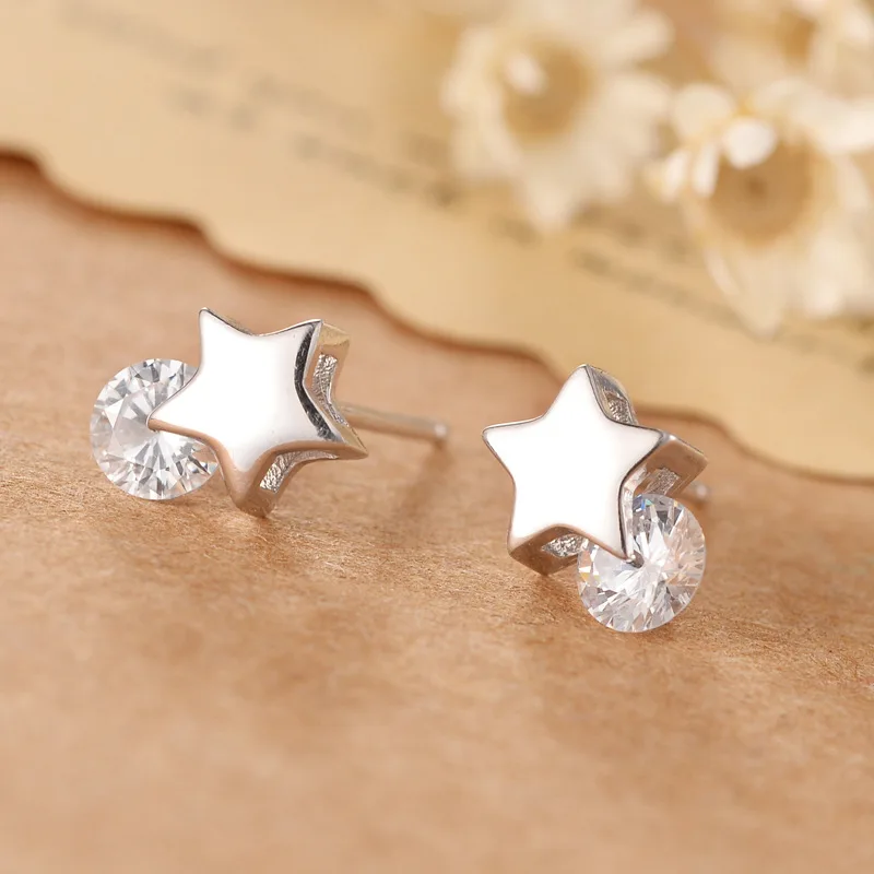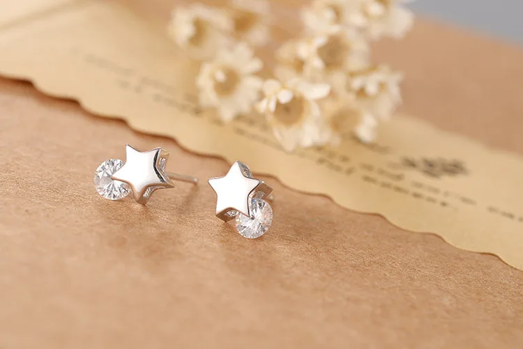 victoria’svogue Real 100% 925 Sterling Silver Star zircon Stud Earrings for Women Girls Fashion sterling-silver-jewelry brincos brinco 2021