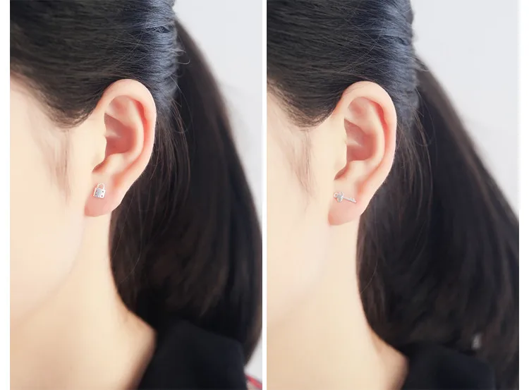 victoria’svogue 925 sterling silver Key Lock Stud Earrings for Women Elegant Wedding Jewelry pendientes mujer moda 2021 Brincos