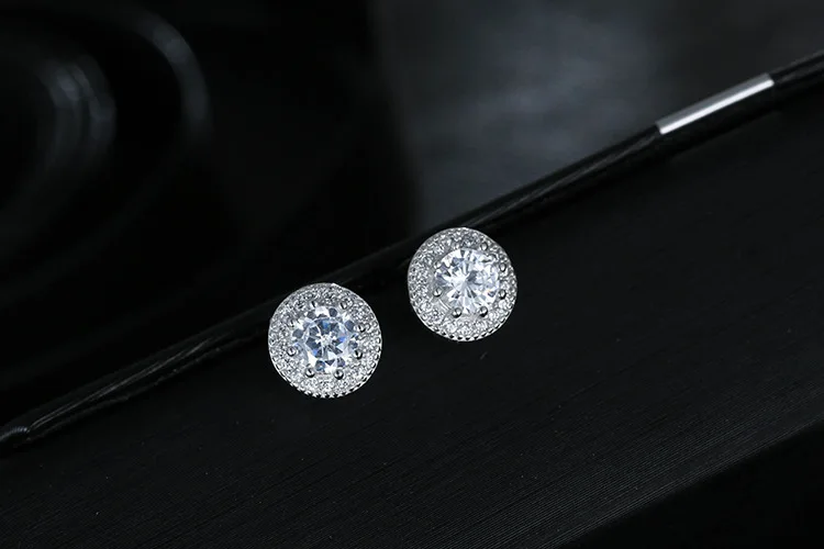 victoria’svogue 2021 925 Sterling Silver Round 3A Zircon Crystal Fashion Stud Earrings For Women Wedding Jewelry