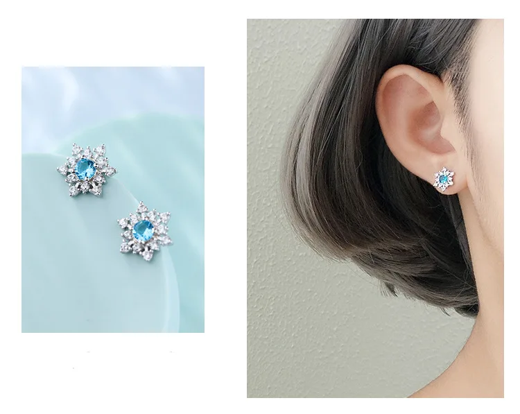 victoria’s vogue 2021 925 Sterling Silver snow 3A Zircon Crystal Fashion Stud Earrings For Women Wedding Jewelry