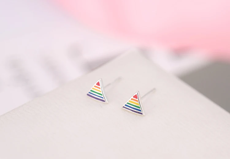 victoria’svogue 2021 925 Sterling Silver Triangle color Stud Earrings For Women Trend Personality Lady Fashion Jewelry