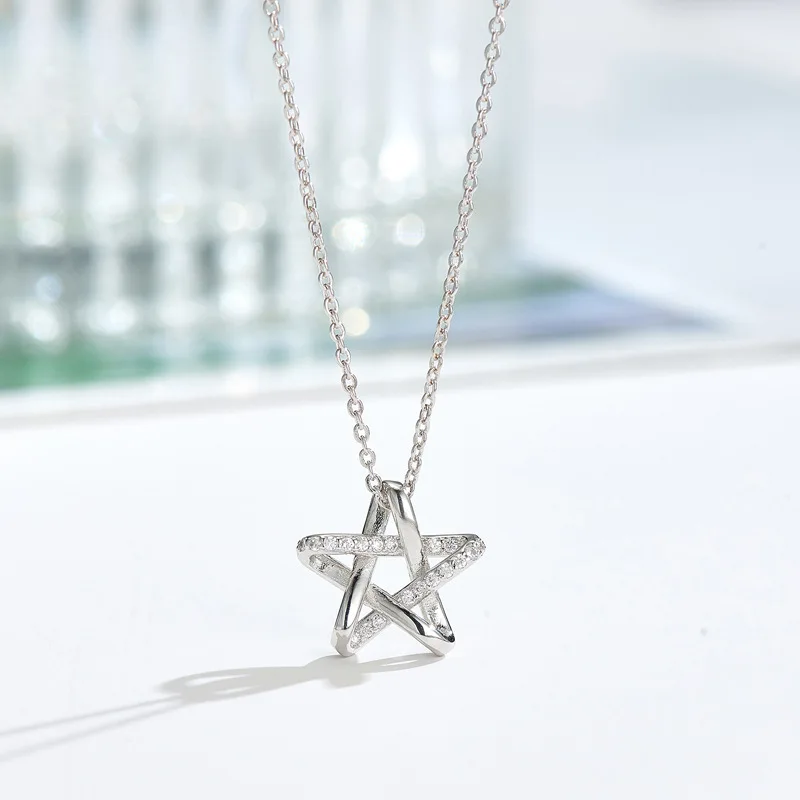 Victoria’svogue Korean 925 Sterling Silver Jewelry Zirconia Star Necklaces for Women Wedding Girls Statement Jewelry 2021 kolye