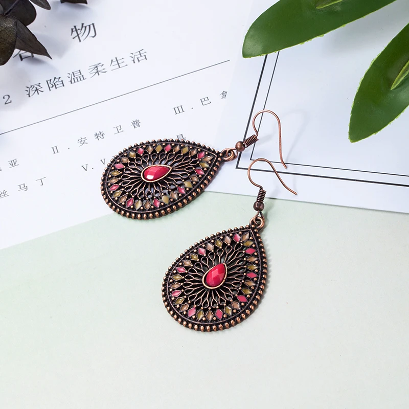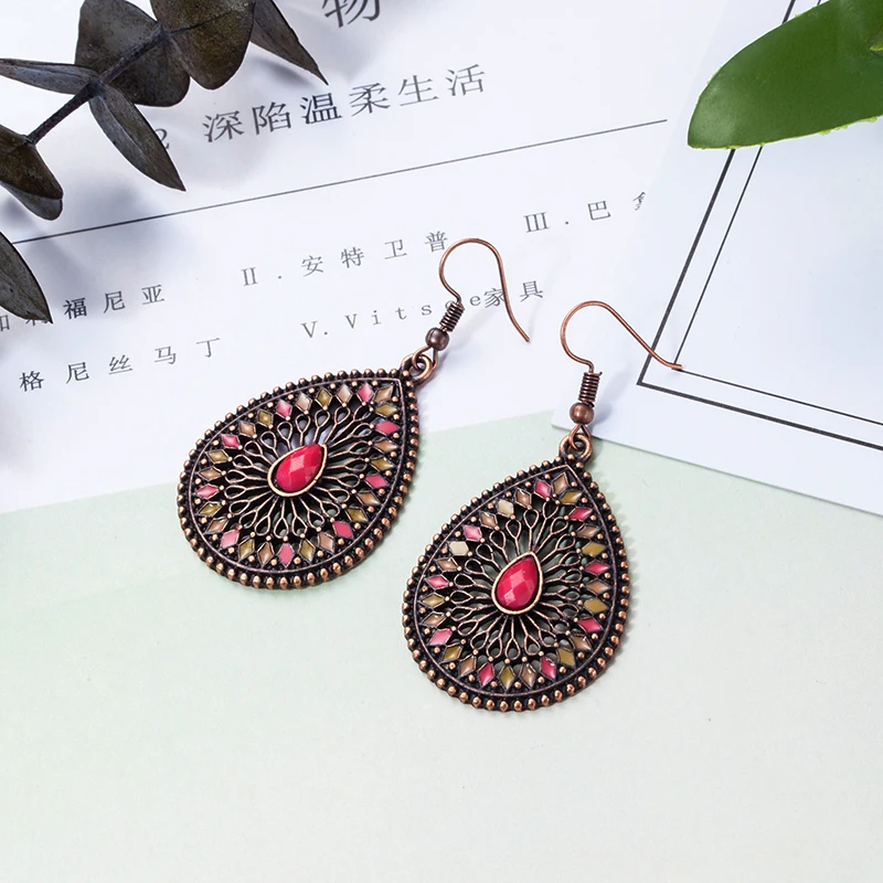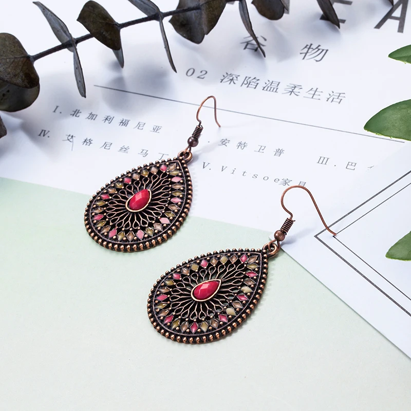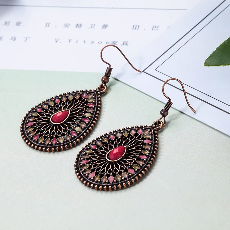 victoria’svogue Retro Ethnic Water Drip Hollow Out Dangle Hanging Drop Earrings for Women 2021 New Fashion Jewelry Accessories