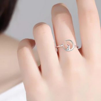 Victoria’s Vogue New Fashion Exquisite Crooked Moon Rabbit 925 Sterling Silver Jewelry Cute Jade Rabbit Sweet Animal Opening Rings