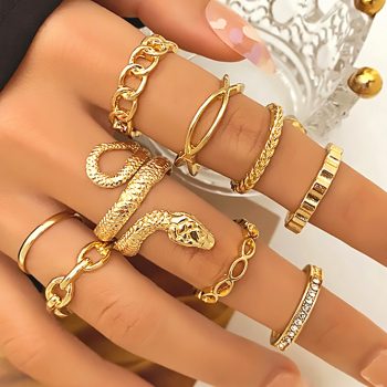 victoria’s vogue 2022 Retro Punk Snake Ring for Men Women Exaggerated Antique Gold Siver Color Fashion Personality Rings Set