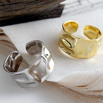 victoria’s vogue Niche Design Irregular Concave-convex 925 Sterling Silver Jewelry Personality Geonetric Wide Face Exquisite Opening Rings