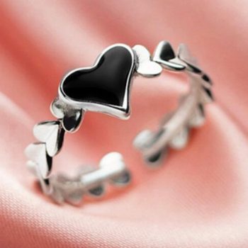 victoria’s vogue New Sweet Epoxy Black Love 925 Sterling Silver Jewelry Temperament Cute Heart Shape Fashion Opening Rings