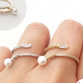 victoria’s vogue 100% 925 Sterling Silver Rings Elegance With White Simulated Pearl Pendant Mini Zircon Crystal Women Open Size Finger Ringictor
