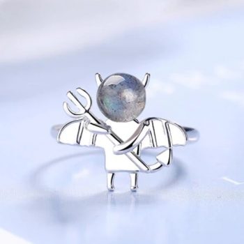 victoria’s vogue New Creative Little Devil 925 Sterling Silver Jewelry Simple Light Moonstone Exquisite Fork Popular Opening Rings