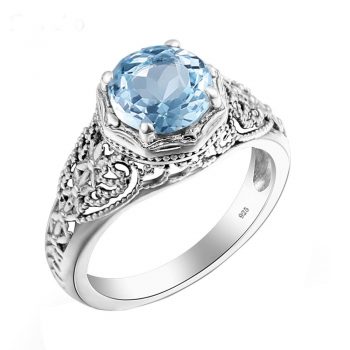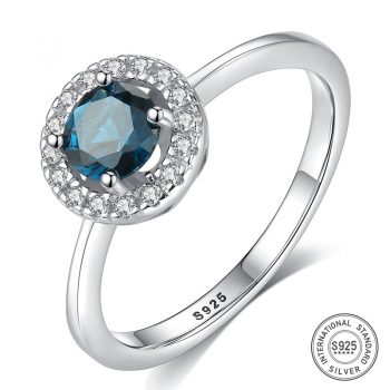 Victoria’s Vogue Brand Women Fine Jewelry Sterling Silver Aquamarine Ring Gemstone Wedding Engagement Party Costume Accessories Fashion
