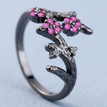 victoria’s vogue New Creative Zirconium Diamond Black Gold Branch 925 Sterling Silver Jewelry Temperament Leaves Popular Opening Rings