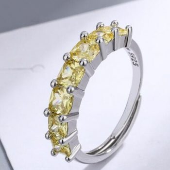 victoria’s vogue New Arrival Simple Yellow Diamond Wide Face 925 Sterling Silver Jewelry Geometric Single Row Crystal Opening Rings