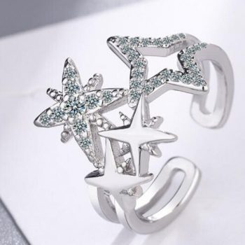 victoria’s vogue New Fashion Temperament Stars 925 Sterling Silver Jewelry Wide Face Exquisite Crystal Popular Opening Rings
