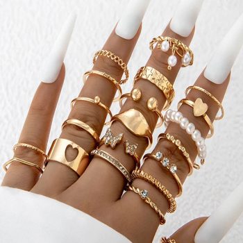 Victoria Vogue Luxury Classic Heart Pearl Rings Set for Women Butterfly Crystal Stone Geometric Alloy Metal Party Jewelry Anillos