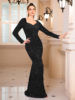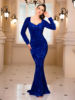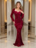 Victoria’s Vogue Luxury Long Sleeves Women Evening Dress Sequins Stretchy Velvet Mermaid Floor Length Prom Gown Formal Dresses 2025