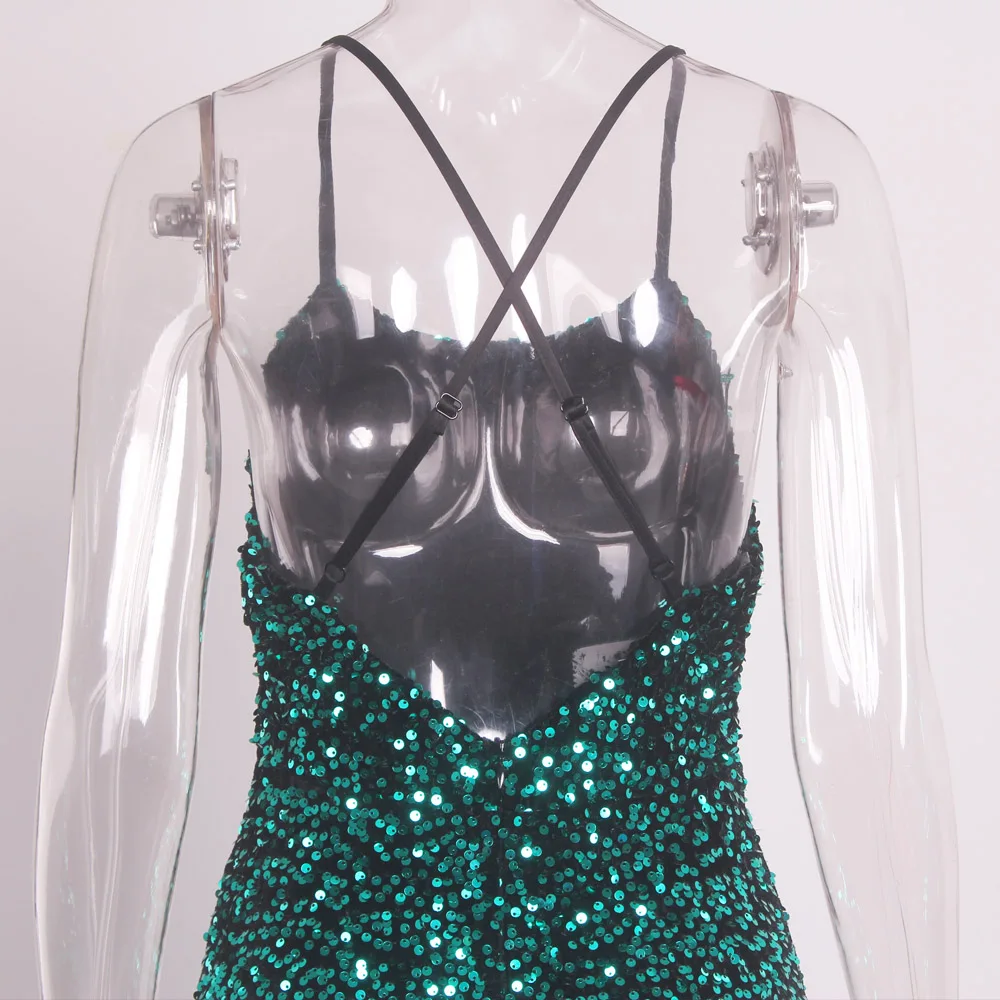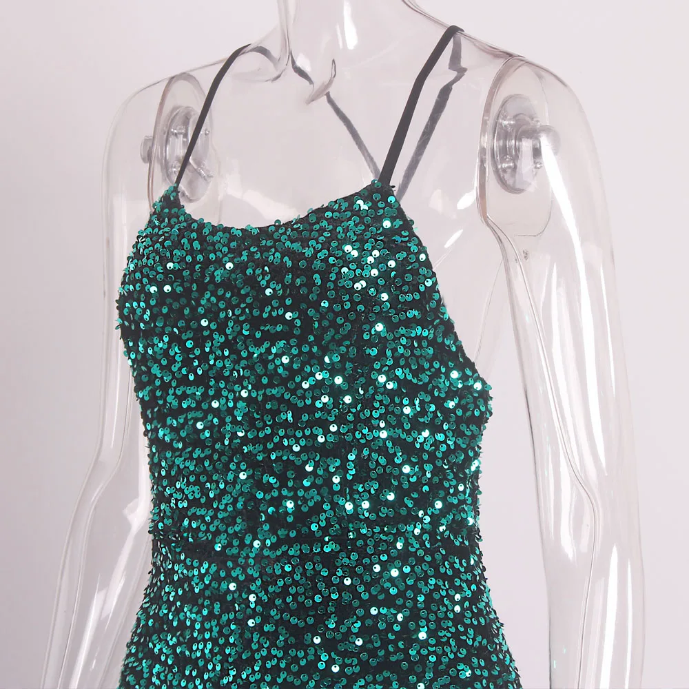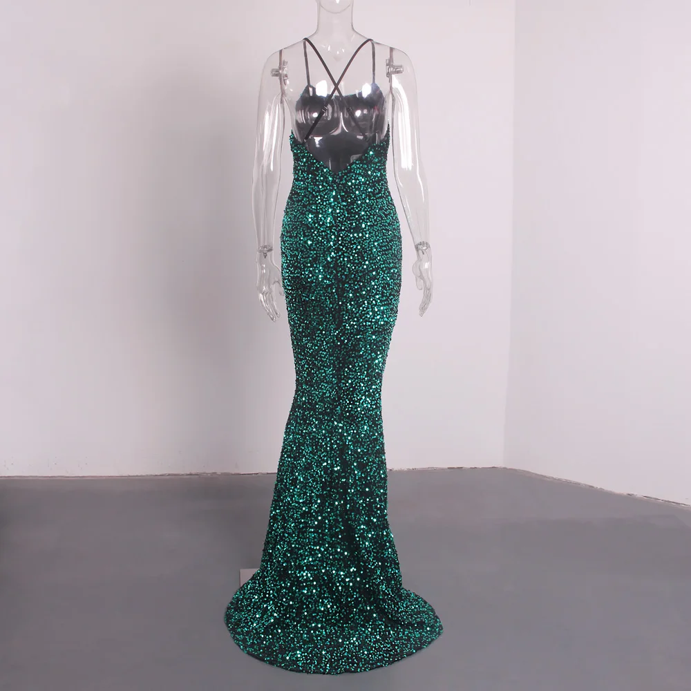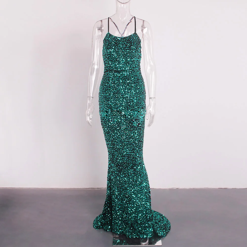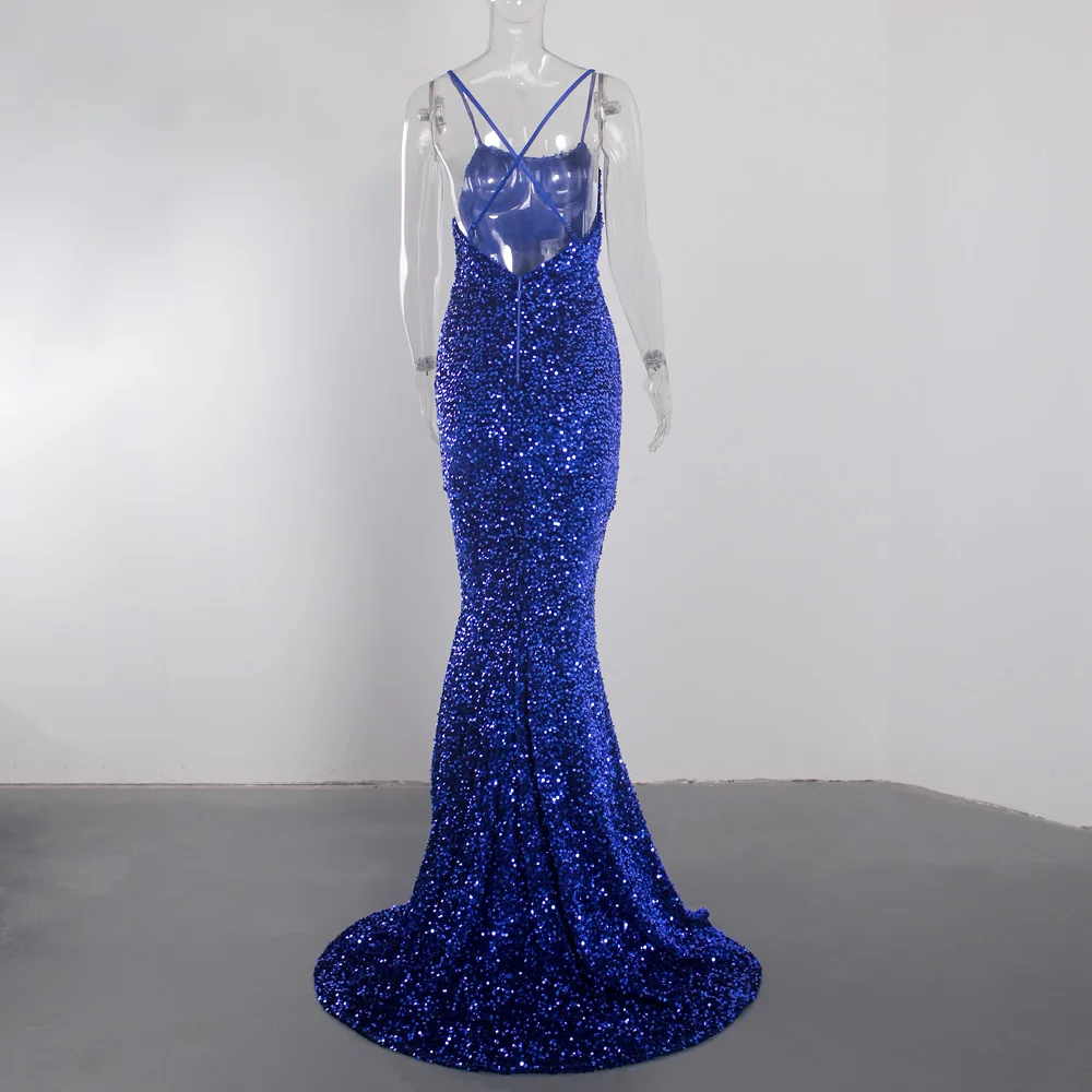 victoria’svogue 2021 Royal Blue Sequined Maxi Dress Backless Cross Straps Stretchy Sleeveless Evening Party Gown