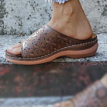 Victoria’s Vogue 2021 Women Sandal Leather Low Heels Woman Wedge Beach Shoes Flower Retro Platform Sandals Ladies Party Shoes Female