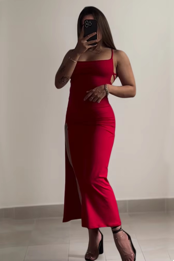 Victoria’s Vouge Sexy Backless Lace Up Long Dress Women Split Sleeveless Bodycon Party Club Evening Dresses High Street Female Suspender Robes