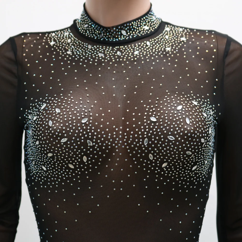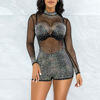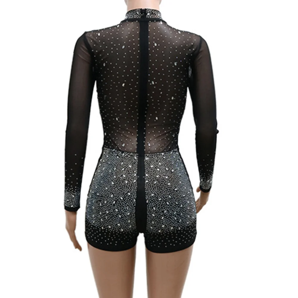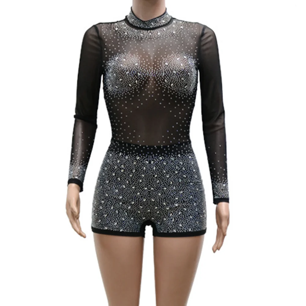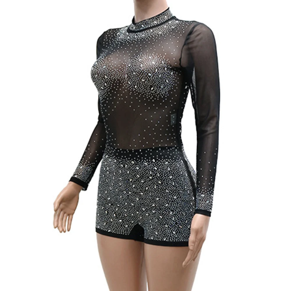 | victoria’svogue Sexy Black see through Rhinestone bodysuit club short jumpsuits women summer Long sleeve bodycon party rompers jumpsuit overalls | ||||||||||||