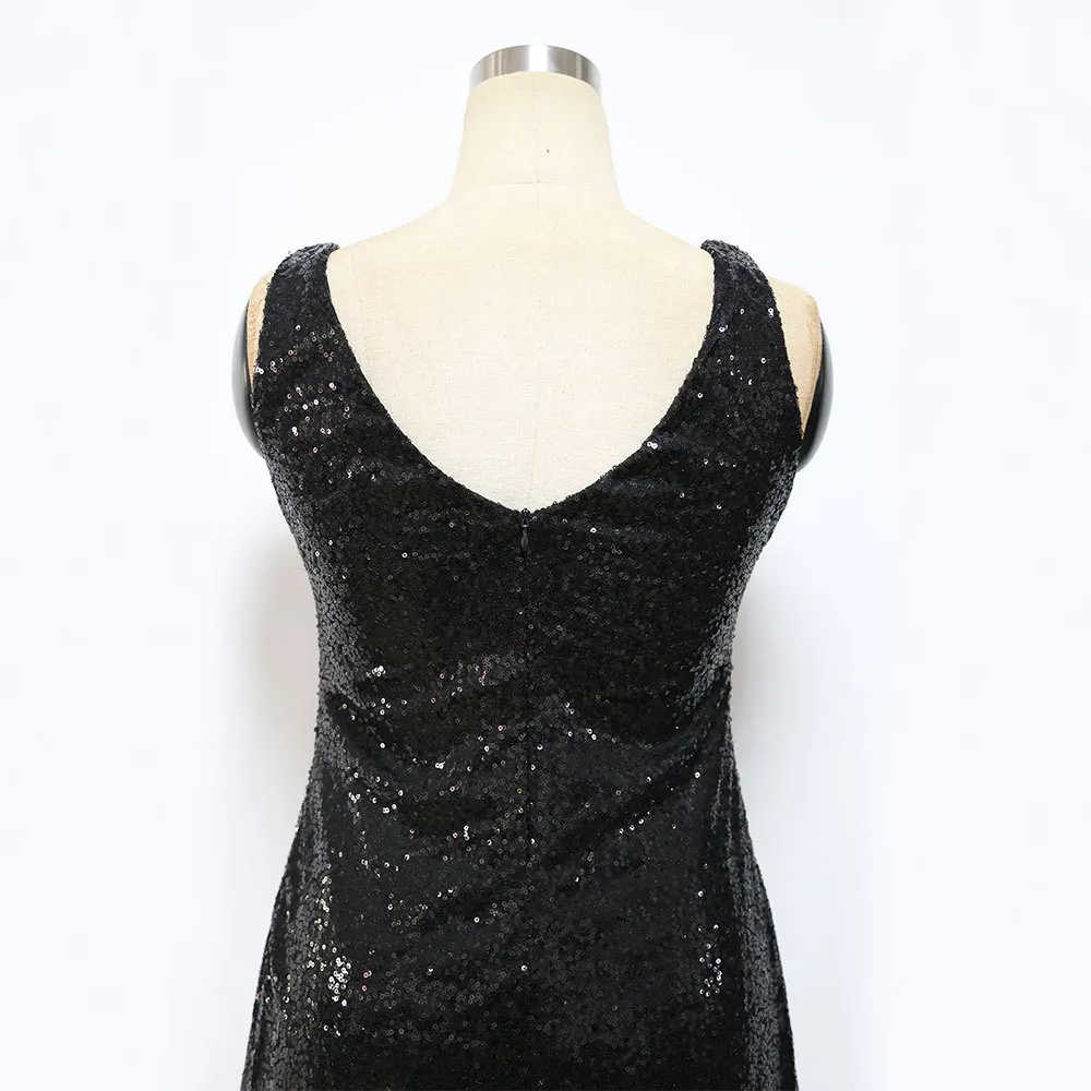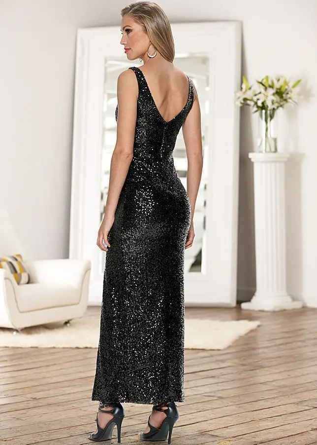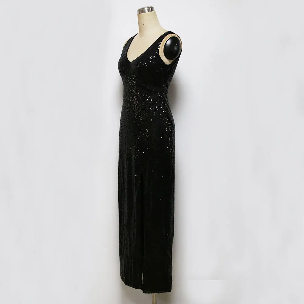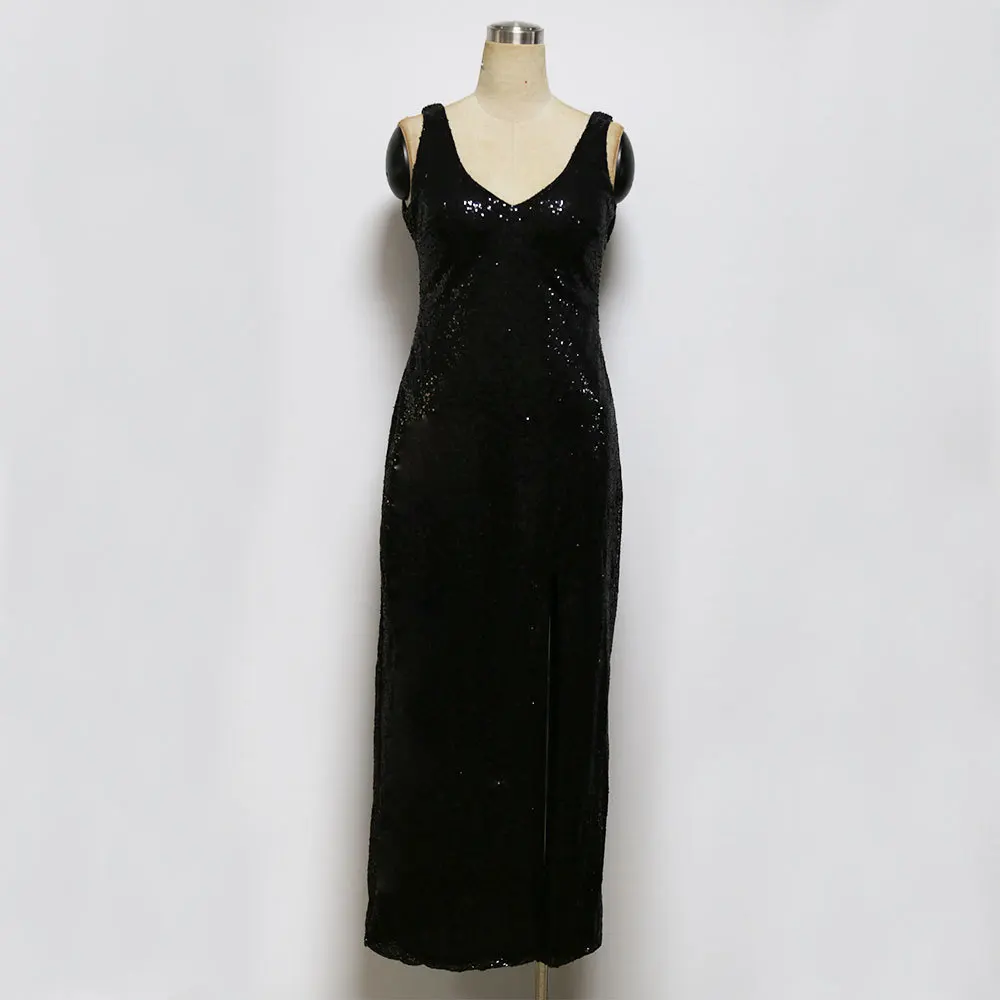 victoria’svogue Sexy black V neck Backless Sequins summer dress women befree elegant off shoulder Evening Party Long Dresses maxi dress vestidos