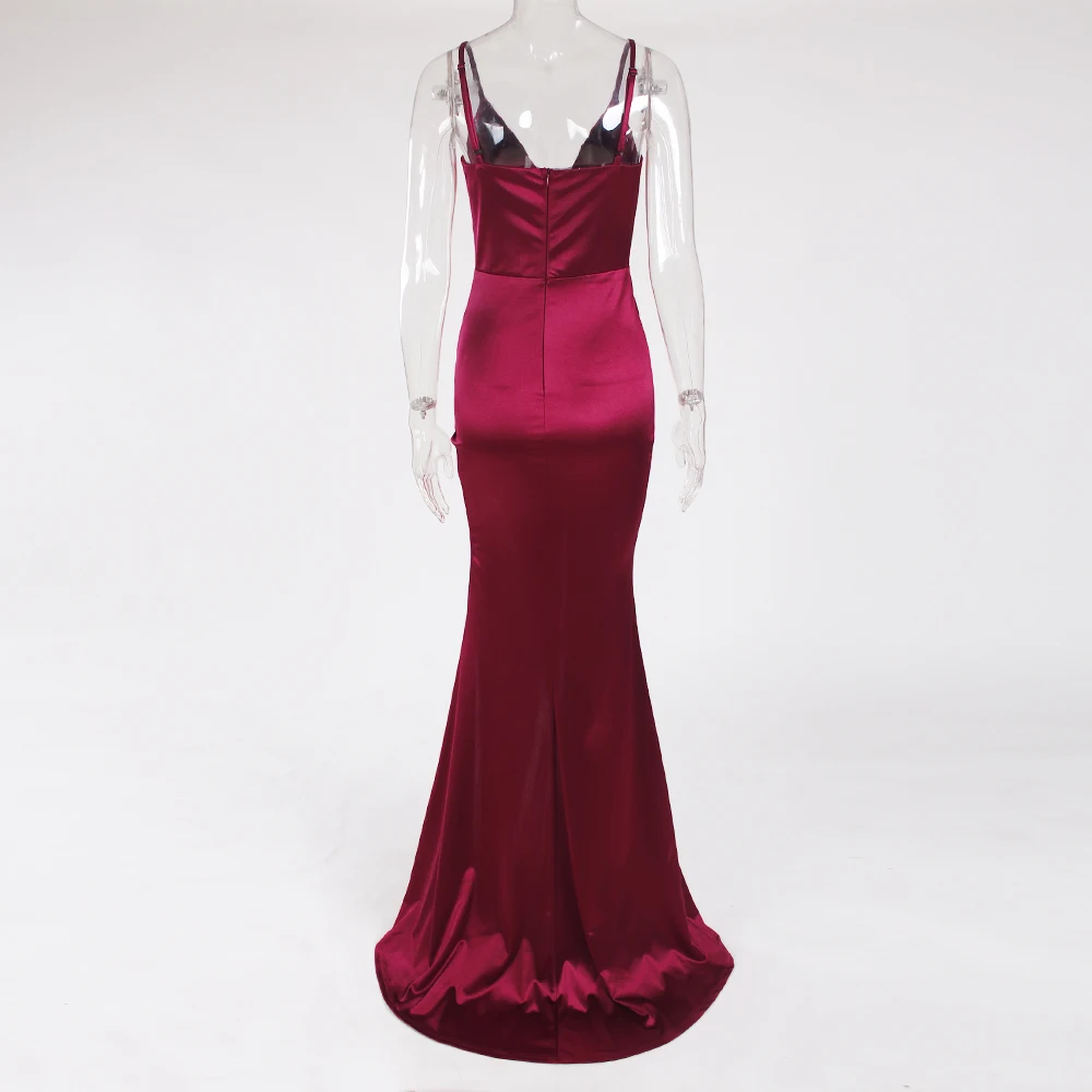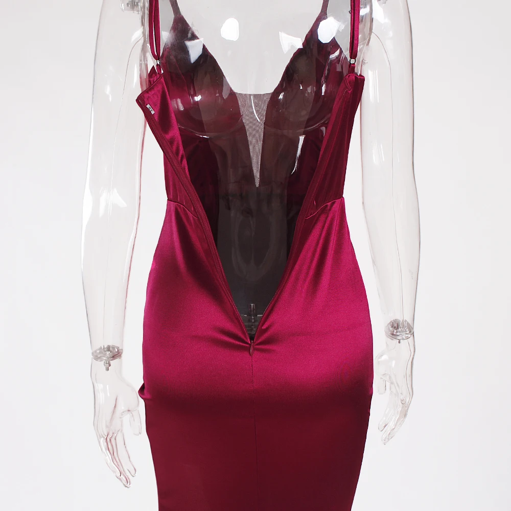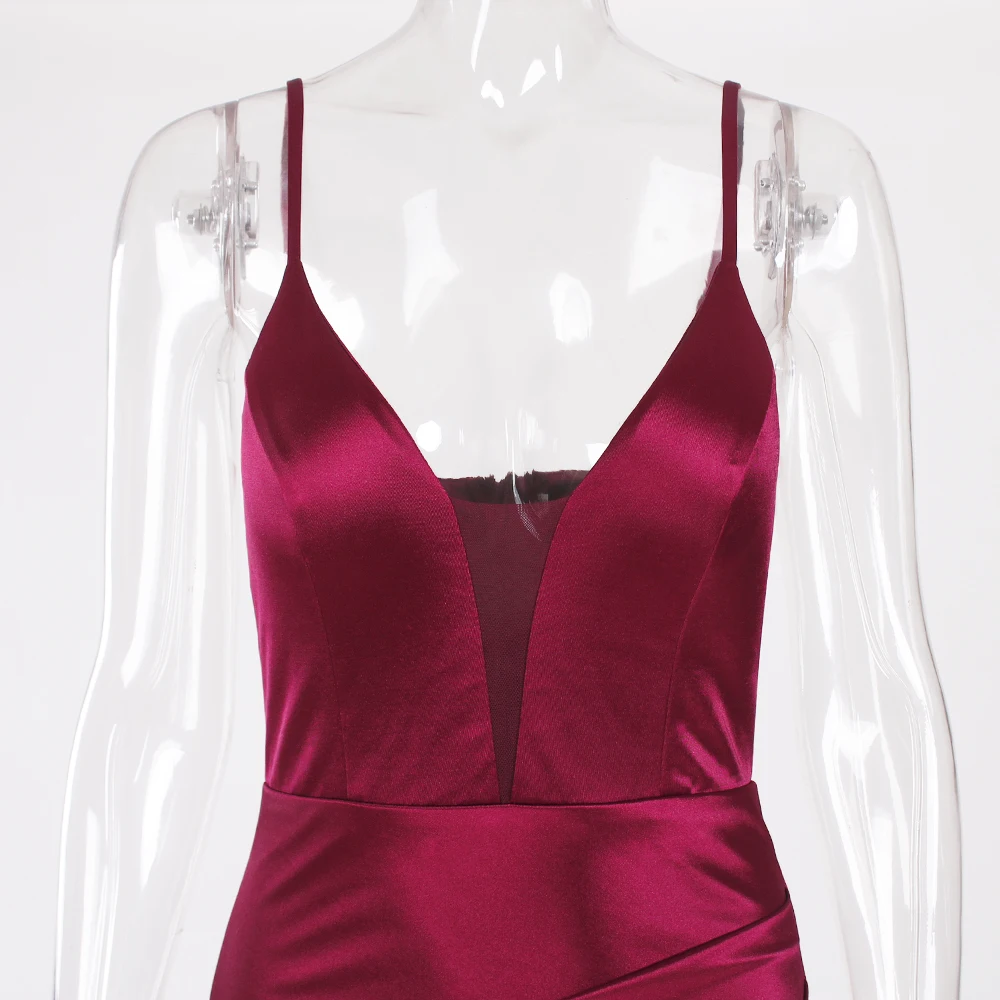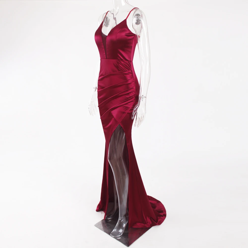 victoria’svogue 2021 Sexy Deep V Neck Hollow Out Long Dress Burgundy Sleeveless Bodycon Maxi Dress Split Leg Floor Length Dress