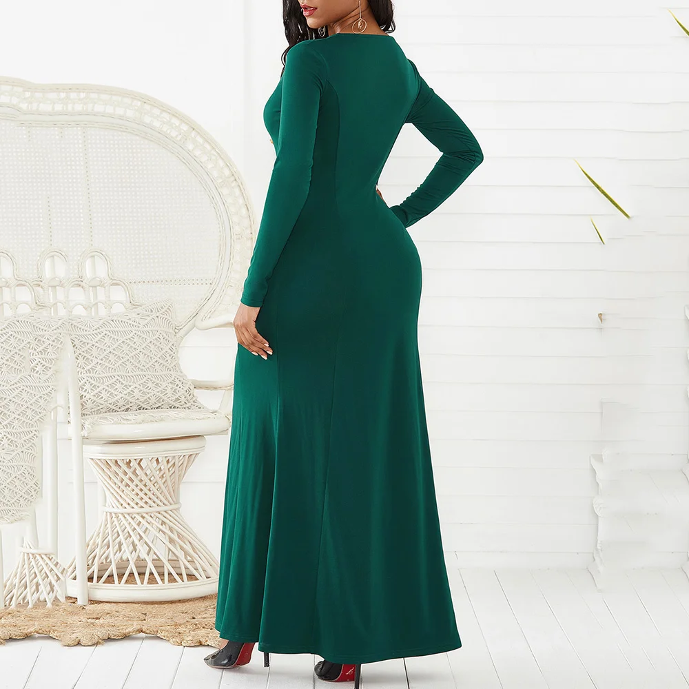 | victoria’s vogue 2021 Sexy Green Long sleeve maxi prom evening dresses for women 2021 party elegant bodycon dress vintage autumn winter woman dress | ||||||||||||